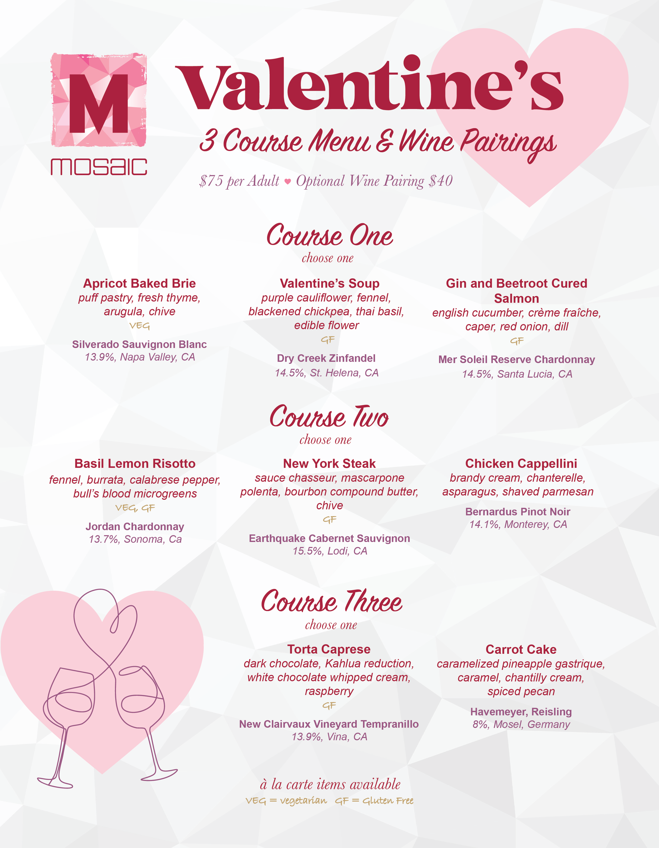 Valentine’s Three Course Prix Fixe Dinner
